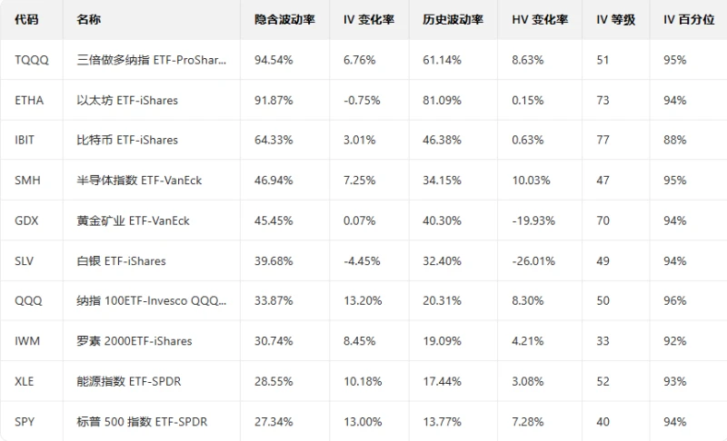 Top 10 US Stock ETFs by Implied Volatility (Based on: Market Cap > $10 billion)