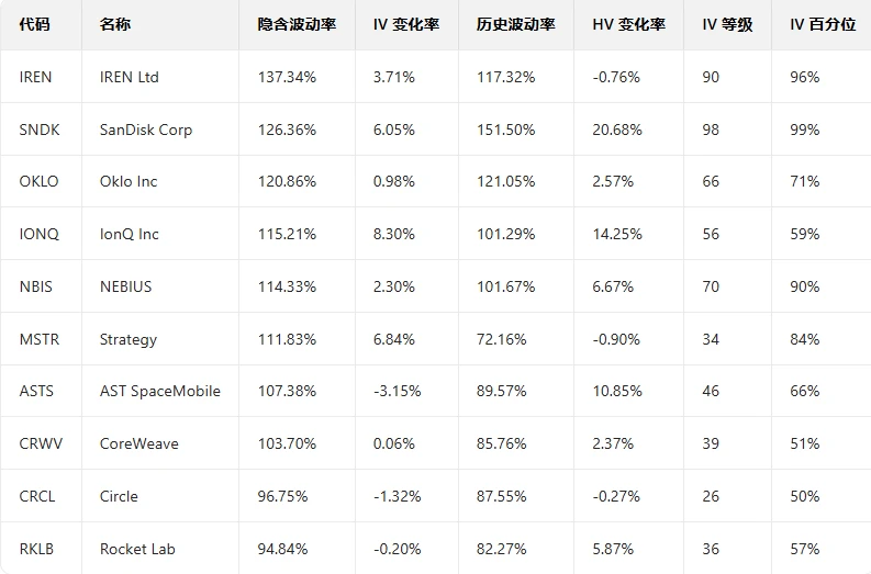 Top 10 US Stocks by Implied Volatility (Underlying Asset Market Cap > $10 Billion, Options Trading Volume > 100,000 Contracts)