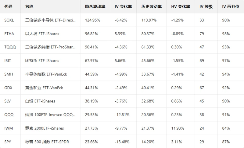 Top 10 US Stock ETFs by Implied Volatility (Based on: Market Cap > $10 billion)