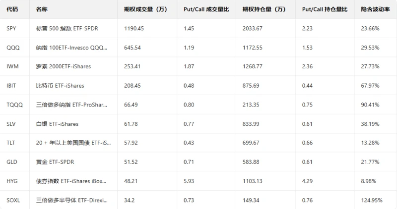 III. Top Ten US Stock ETF Options Trading Volume Ranking
