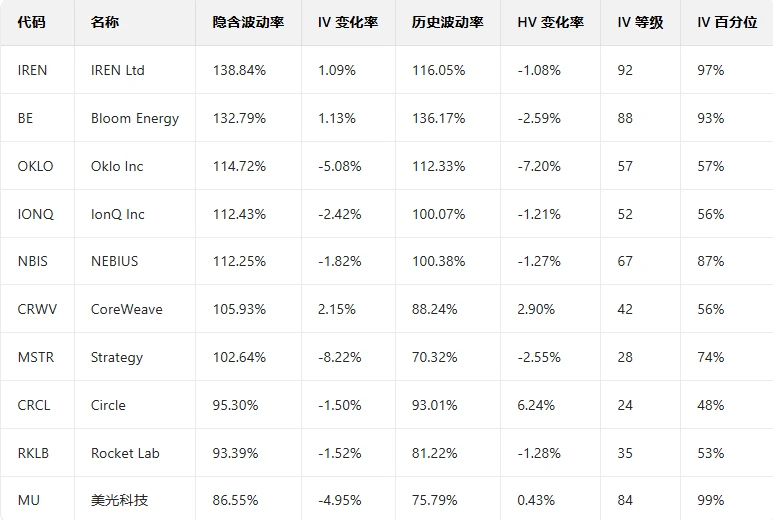 Top 10 US Stocks by Implied Volatility (Underlying Asset Market Cap > $10 Billion, Options Trading Volume > 100,000 Contracts)
