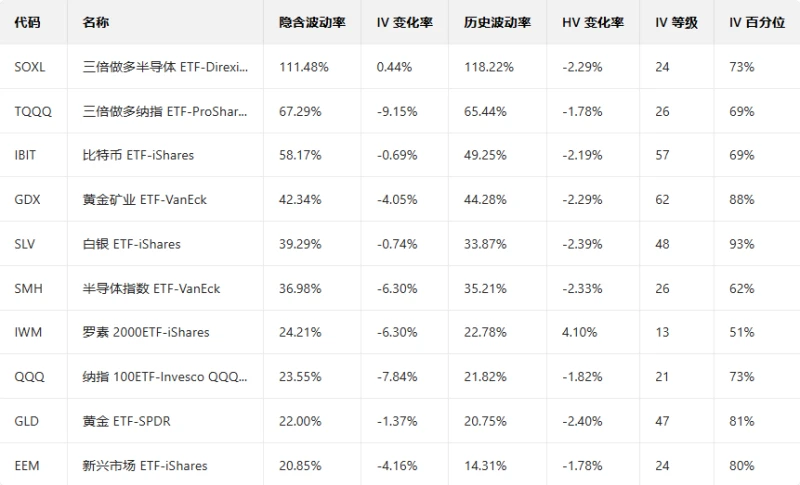 Top 10 US Stock ETFs by Implied Volatility (Based on: Market Cap > $10 billion)