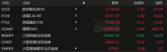 U.S. stock index futures were mixed in pre-market trading on Thursday, while major European indices generally rose. As of press time, the Nasdaq... S&P 500 futures fell 0.06%, S&P 500 futures rose 0.07%, and Dow Jones futures rose 0.08%.