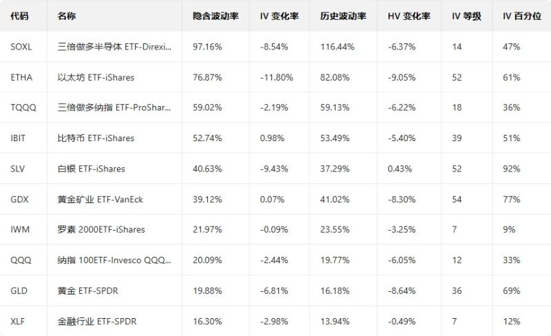 Top 10 US Stock ETFs by Implied Volatility (Based on: Market Cap > $10 billion)