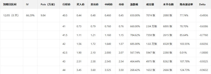 The volume distribution of S&P 500 index options expiring today shows a divergence between call and put order distributions, with put orders peaking at 6800 points and call orders peaking at 6900 points.