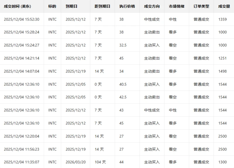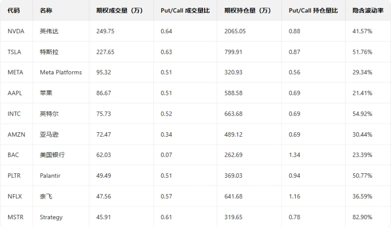 1. Intel The stock fell 7.45% in the previous trading day, with the put/call ratio rising and trading volume increasing the day before.