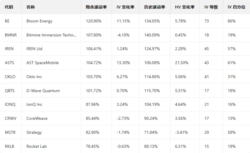 Top 10 most volatile US stock options (underlying asset market capitalization > $10 billion and option trading volume > 100,000 contracts)