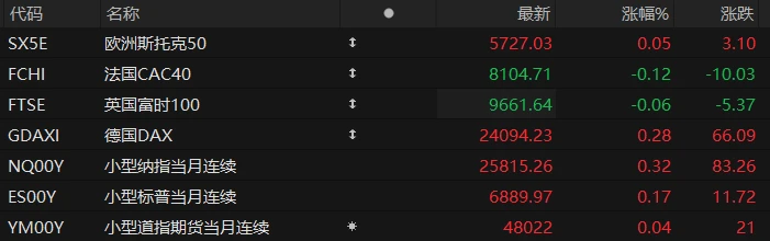 U.S. stock index futures rose across the board in pre-market trading on Monday, while major European indices showed mixed results. As of press time, the Nasdaq... S&P 500 futures rose 0.32%, S&P 500 futures rose 0.17%, and Dow Jones futures rose 0.04%.