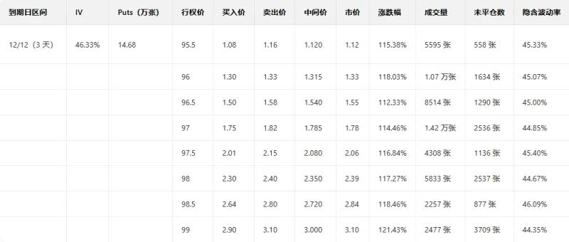 2. Tesla The stock fell 3.39% in the previous trading day, with the put/call ratio declining slightly the day before, and trading volume also decreasing.