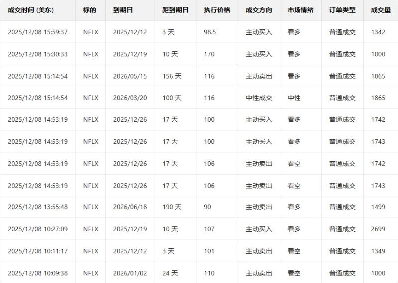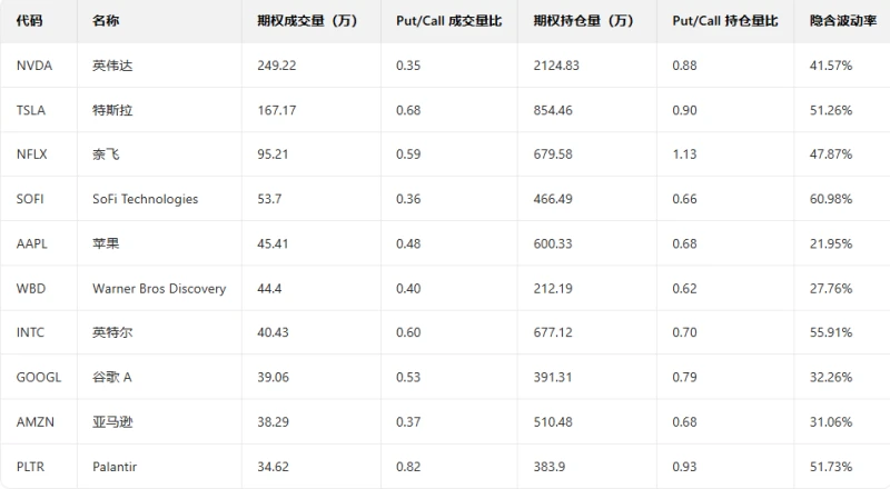 1. Netflix The stock fell 3.44% in the previous trading day, with the put/call ratio declining slightly the day before, and trading volume also decreasing.