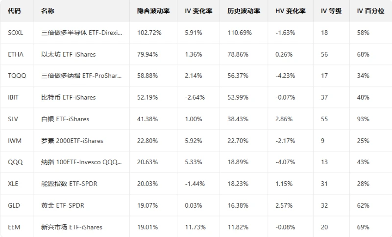 Top 10 US Stock ETFs by Implied Volatility (Based on: Market Cap > $10 billion)