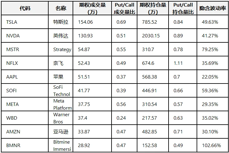 Top 10 US Stock Options Trading Volume Ranking