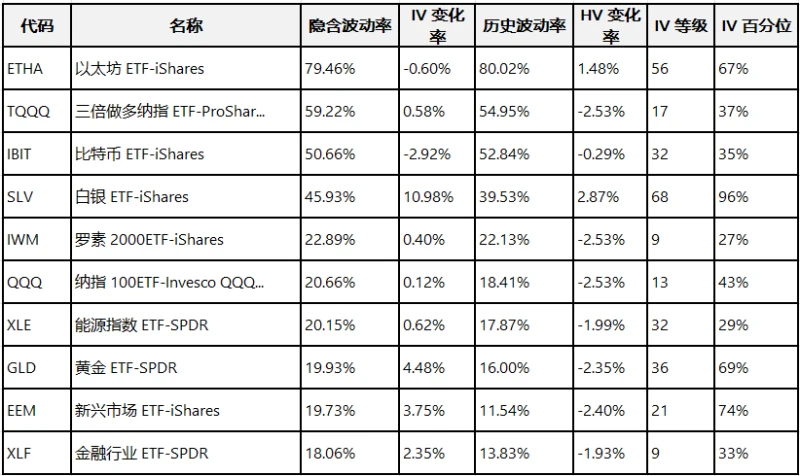 Top 10 US Stock ETFs by Implied Volatility (Based on: Market Cap > $10 billion)
