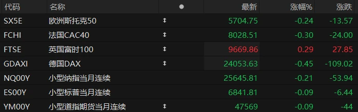 U.S. stock index futures fell across the board in pre-market trading on Wednesday, while most major European indices also declined. As of press time, the Nasdaq... S&P 500 futures fell 0.21%, S&P 500 futures fell 0.09%, and Dow Jones futures fell 0.09%.