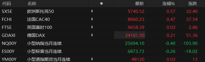 U.S. stock index futures traded in a narrow range in pre-market trading on Thursday, while most major European indices rose. As of press time, the Nasdaq... S&P 500 futures fell 0.40%, S&P 500 futures fell 0.26%, and Dow Jones futures rose 0.03%.