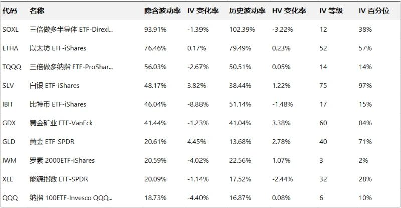 Top 10 US Stock ETFs by Implied Volatility (Based on: Market Cap > $10 billion)